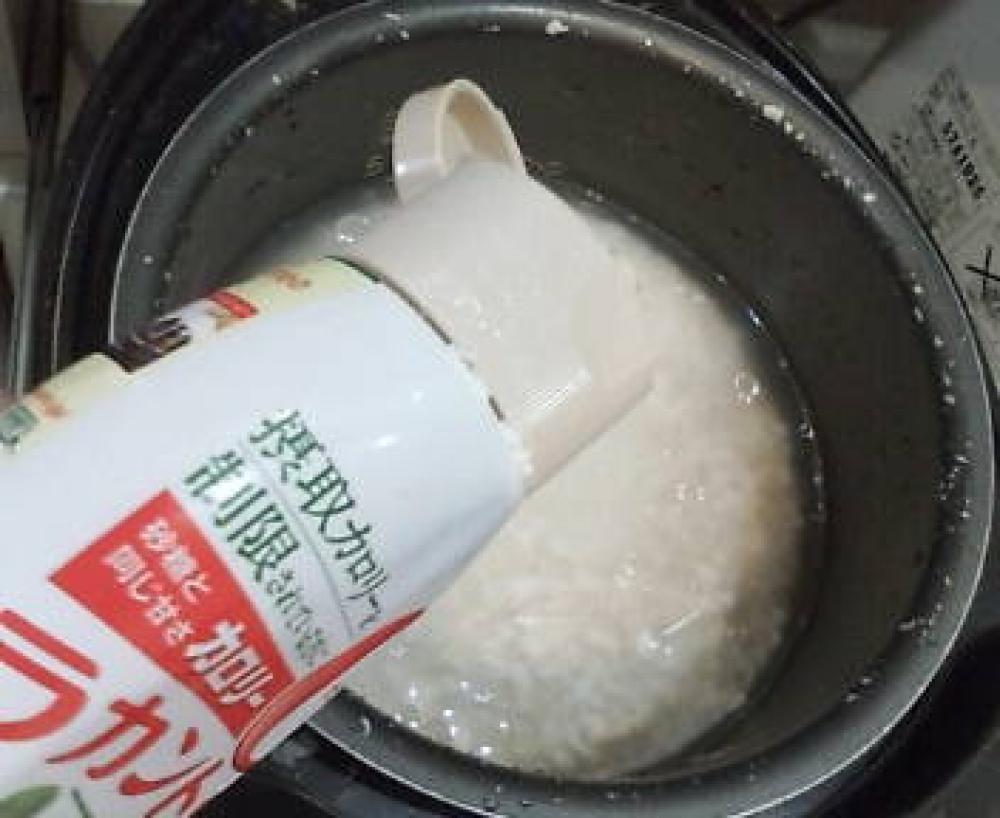 | 1 | 白米を洗って30分置く 炊飯器で炊く前に 押し麦・太白ごま油・ラカントS液状を入れて、さっと混ぜてスイッチオン |